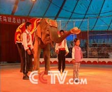 别看这些驯兽师们在表演时那么威风十足,在台下他们可是花了不少心血,要把这些凶猛的庞然大物训练成听从指挥的超级明星,光靠艰苦的训练是远远不够的。驯兽师说,动物都要用感情来驯化,教节目时就跟老师教小孩一样的;其实动物并不象人们想象的这么可怕,其实它和人接触久了,也是有感情的。