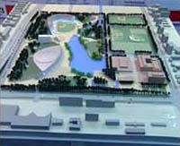 接下来,我们再来了解另外一个重要的奥运场地――北京五棵松文化体育中心的规划设计方案。五棵松文化体育中心位于北京市区的西部,西长安街沿线的北侧,紧靠着西四环,占地相当于奥林匹克公园的十分之一,将在北京奥运期间作为篮球、棒球、垒球的比赛场馆,同时还要成为西部地区市民体育文化活动的中心。经过评审委员会评议,一等奖空缺,评出了两个二等奖,三个三等奖。获奖方案不仅巧妙设计了五棵松文化体育中心在奥运会时的功能,同时也兼顾了奥运会结束后这个文体中心的功能变化,象这个获得二等奖的方案就设计在奥运会结束后,将原来的垒球比赛场馆改建成为足球场、游泳馆等其他相关商业配套设施,使之能够发挥更大的作用。