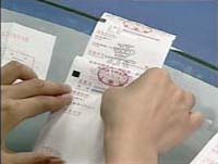 北京旧版发票的防伪措施主要是靠防伪纸和油墨,而这次新版发票改革以后,提高了发票印制技术水平,这是新发票的票样,你看,我们现在看发票的编号是实的,如果通过普通的放大镜就可以发现发票的编号是由一个个小园点组成的,而且北京市地税局还利用发票的号码和它的密码唯一对应的关系,来防止假发票产生。由于新版发票的印刷需要高科技、高投入,这样能有效地防止假发票的产生。北京这次启用新版有奖发票的另一个目的就是鼓励人们消费完后开具发票。但是,我们的记者在采访中了解到,相当多数消费者并没有太多索要发票的意识。除非是公费,给单位买东西才会开。