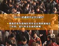 我们的记者从一场刚刚结束的大学生招聘会上了解到,有230多家用人单位提供了6000多个就业岗位,但是求职的学生却来了将近两万人,毕业生们感到了空前的就业压力。在沈阳,由于人数太多,求职者要分批进场,在广州,万人争抢千个职位。难道大学生的数量已经超过社会的需要了吗?我们来看两个数字,全国人口普查资料表明,目前全国平均每100个人当中才有不到4个大学生,这样的比例甚至低于印度等一些发展中国家,大学生不是多了,而是还很少,那么为什么毕业生感到工作那么难找呢?毕业生增多了30%,社会就接纳不了吗?就这个问题,我们采访到了北京市高校毕业生就业指导中心的任占忠主任。