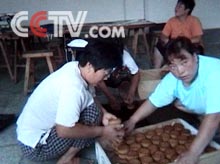 记者在河北省容城县和雄县,先后走访了10家月饼生产厂家,发现它们都有必要的手续,但生产环境却都像刚才节目中的那些厂子一样,缺少必要的卫生防护设施。这些厂家中秋节前生产月饼,春节前后生产元宵,平时就生产糕点,一年四季是节日不断,他们就生产不断。我们不知道他们的各种许可证是真是假,如果是真的,希望那些给他们发证的机关亲自来看看。