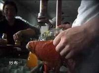 如果有脏东西,就得把瓶子重新打开,简单地用纱布进行一次过滤,工人们说,这样能把脏东西过滤掉80%。