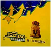 10月中旬,国内第一支指数基金--华安上证180指数增强型基金上市发行,记者在发行当天一大早就来到工行北京市分行的两家储蓄所,新的基金品种引起了很多人的关注,在百万庄储蓄所我们看到宣传画上打出了“引领投资新理念,赚了指数就赚钱”的宣传词。但由于受股市低迷的影响,投资者的反响并不热烈,这使得发行者面临着比以往更大的压力,平时一贯低调的基金经理现在成了最热情的推销员。