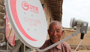 大庙村的村民张大爷正陪孙女正津津有味地看着动画片《西游记》。“能收到46个台呢。”专门数过频道的张大爷指着窗外小巧的卫星接收设备,笑呵呵地说。他爱看新闻,娃娃喜欢动画片,老伴爱看电视剧,政府发给他们的“电视通”,赶得上城里人交钱的有线电视。