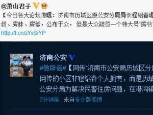 新浪网友@萧山君子发微博称 :“【今日各大论坛惊曝:济南市历城区原公安分局局长程绍春曝有16栋楼 】在2012年年末许多房叔、房妹、房爹,公布于众, 但是大众疏忽一个特大号“房爷”,他不是几套房,而是16栋楼!”[详细]